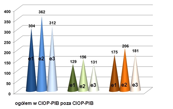 Zadanie 3.SP.11. Liczba elementów wyposażenia pomiarowego i badawczego wzorcowanych i sprawdzanych w latach 2020-2022 (e1, e2, e3 – numery kolejnych etapów)