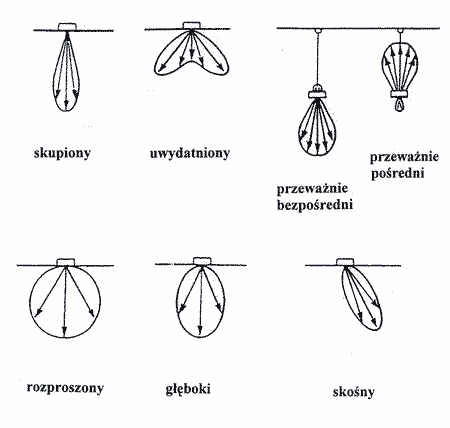 Rys. 2 Przykłady charakterystycznych rozsyłów światłości opraw oświetleniowych