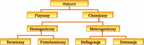 Wybuchy można skwalifikować w zależności od ich przebiegu, rozprzestrzeniania się, sposobu inicjowania. Schemat podziałów wybuchów przedstawiono na rys. 2.