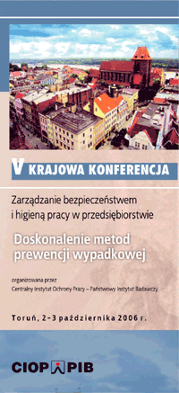V KRAJOWA KONFERENCJA: Zarządzanie bezpieczeństwem i higieną pracy w przedsiębiorstwie "Doskonalenie metod prewencji wypadkowej" 2 - 3 października 2006 r., Toruń