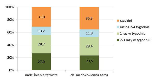 Rysunek 3. Aktywność fizyczna, tzw. aktywny wypoczynek, osób chorujących na nadciśnienie tętnicze krwi i chorobę niedokrwienną serca