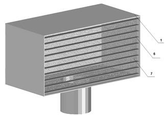 Rys.2. Schemat konstrukcji nawiewnika z poziomymi żaluzjami i zainstalowaną wewnątrz płytą perforowaną
