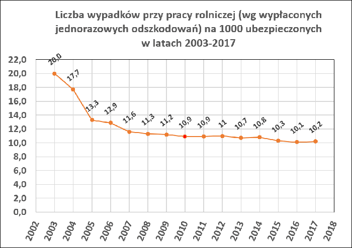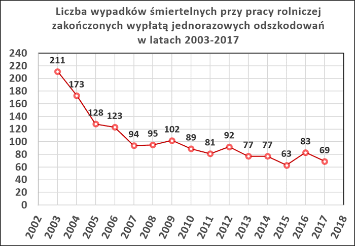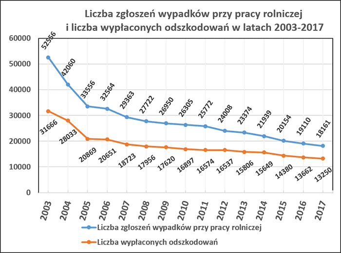 Statystyka wypadków przy pracy rolniczej w latach 2003 - 2017