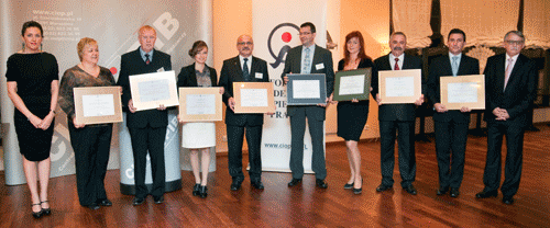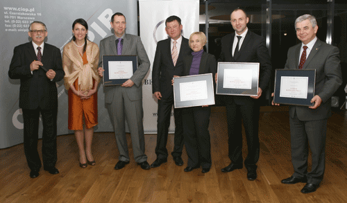 Fot. (od lewej): G. Bednarczyk, Samodzielny Publiczny ZOZ w Mazowie Maz. (Złota Karta Lidera); S. Gawiński, Kraft Foods Polska Confectionery Production Sp. z o.o. (Złota Karta Lidera); K. Knapczyk, Fiat Auto Poland S.A. (Złota Karta Lidera); J. Śliwa, Centralna stacja Ratownictwa Górniczego S.A. (Złota Karta Lidera); T. Jóźwicki, Polimex-Mostostal S.A. (Srebrna Karta Lidera); A. Ciulak, PSI Spółdzielczy Producent Sprężyn (Zielona Karta Lidera); J. Prasałek, GDF SUEZ Energia Polska S.A. (Złota Karta Lidera); W. Chybiński, PGE GiEK S.A. Oddział Elektrownia Bełchatów (Złota Karta Lidera); W.M. Zawieska, CIOP-PIB