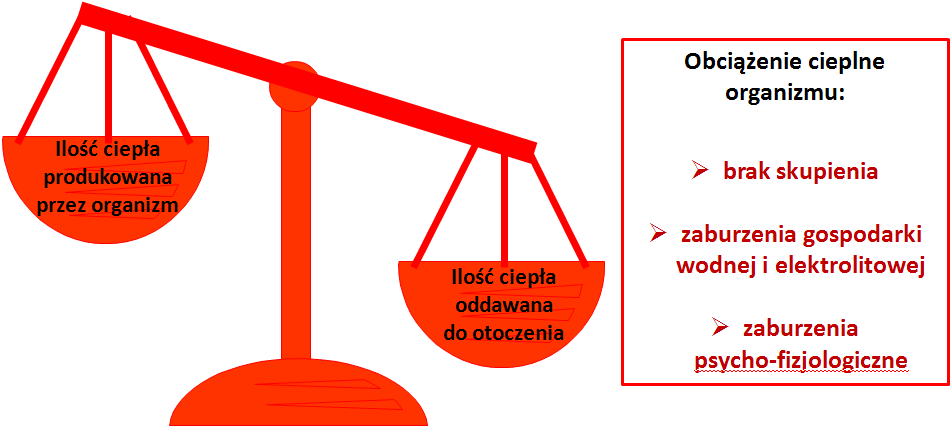 Rys. 6. Schematycznie ukazany bilans cieplny w środowisku gorącym