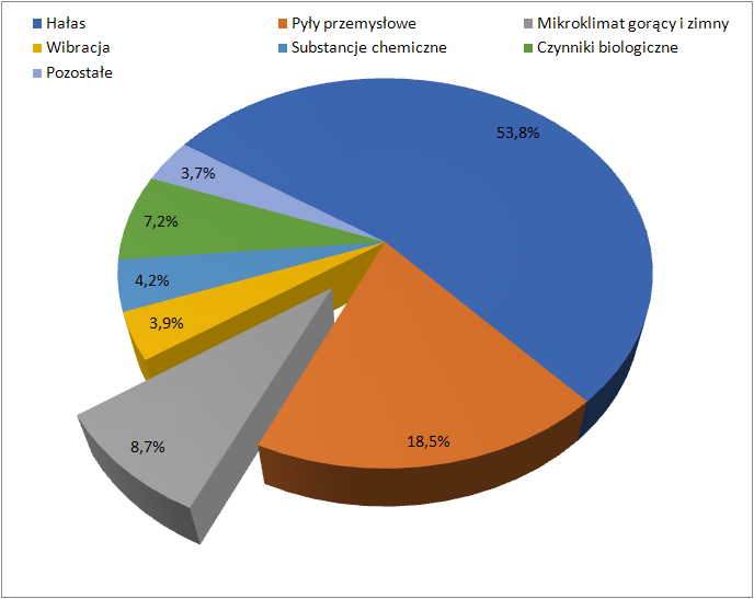Zagrożenie występujące w środowisku pracy wynikające z niekorzystnego wpływu mikroklimatu (gorącego i zimnego) jest wymieniane na 3-cim miejscu wśród wszystkich czynników występujących w środowisku pracy (rys. 1) [Warunki pracy w 2021 r. GUS, Warszawa 2022].
