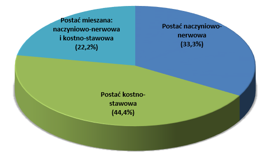 Na wykresie z rys. 6 przedstawiono procentowy podział przypadków każdej z postaci zespołu wibracyjnego z 2019 roku.