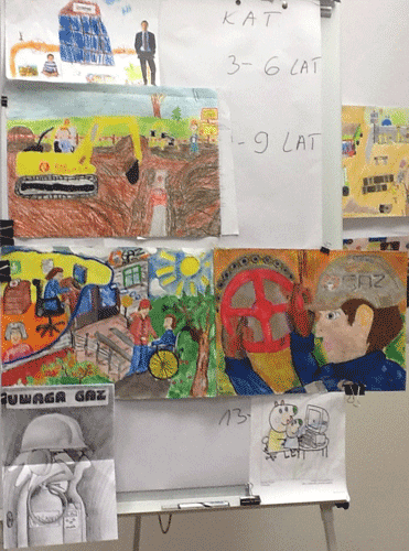 Głównym celem konkursu była popularyzacja problematyki bezpieczeństwa pracy wśród dzieci a także podnoszenia świadomości występowania zagrożeń w środowisku pracy ich rodziców. Przedmiot konkursu dotyczył plastycznego przedstawienia własnego wyobrażenia o bezpiecznej pracy rodzica w dowolnie wybranym miejscu, np. w biurze, przy obsłudze systemu przesyłowego, na terenie tłoczni gazu, czy placu budowy. Na konkurs wpłynęło 27 prac plastycznych.